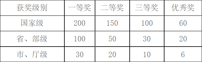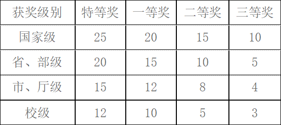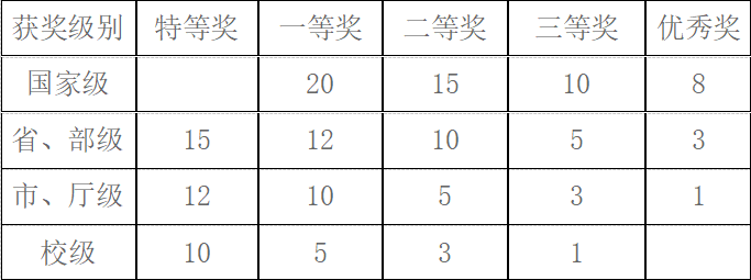 (2)学科竞赛获奖的计分标准(单位:分 / 项)